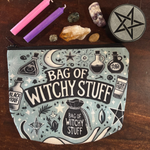 Keep all your potions, lotions, and magical bits in one place with this “Witchy Stuff” cosmetic bag. Perfect for makeup, crystals, oils, your tarot deck, or on-the-go altar supplies, this bag is made for witches who like their tools organized, discreet, and a little bit sassy.