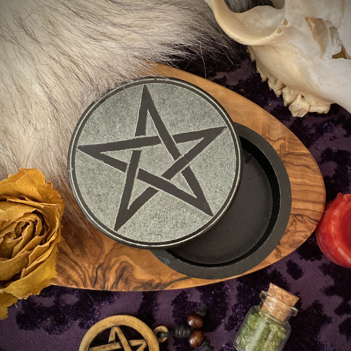 This beautifully carved Pentacle Soapstone Box is a timeless piece designed to protect, store, and empower your sacred items. Crafted from natural soapstone, each box carries the grounding, calming energy of the earth, making it ideal for holding crystals, herbs, jewelry, tarot charms, pendulums, or small ritual tools. The pentacle—an ancient symbol of protection, balance, and spiritual harmony—is hand-carved into the lid, creating a powerful energetic shield around whatever you place inside.