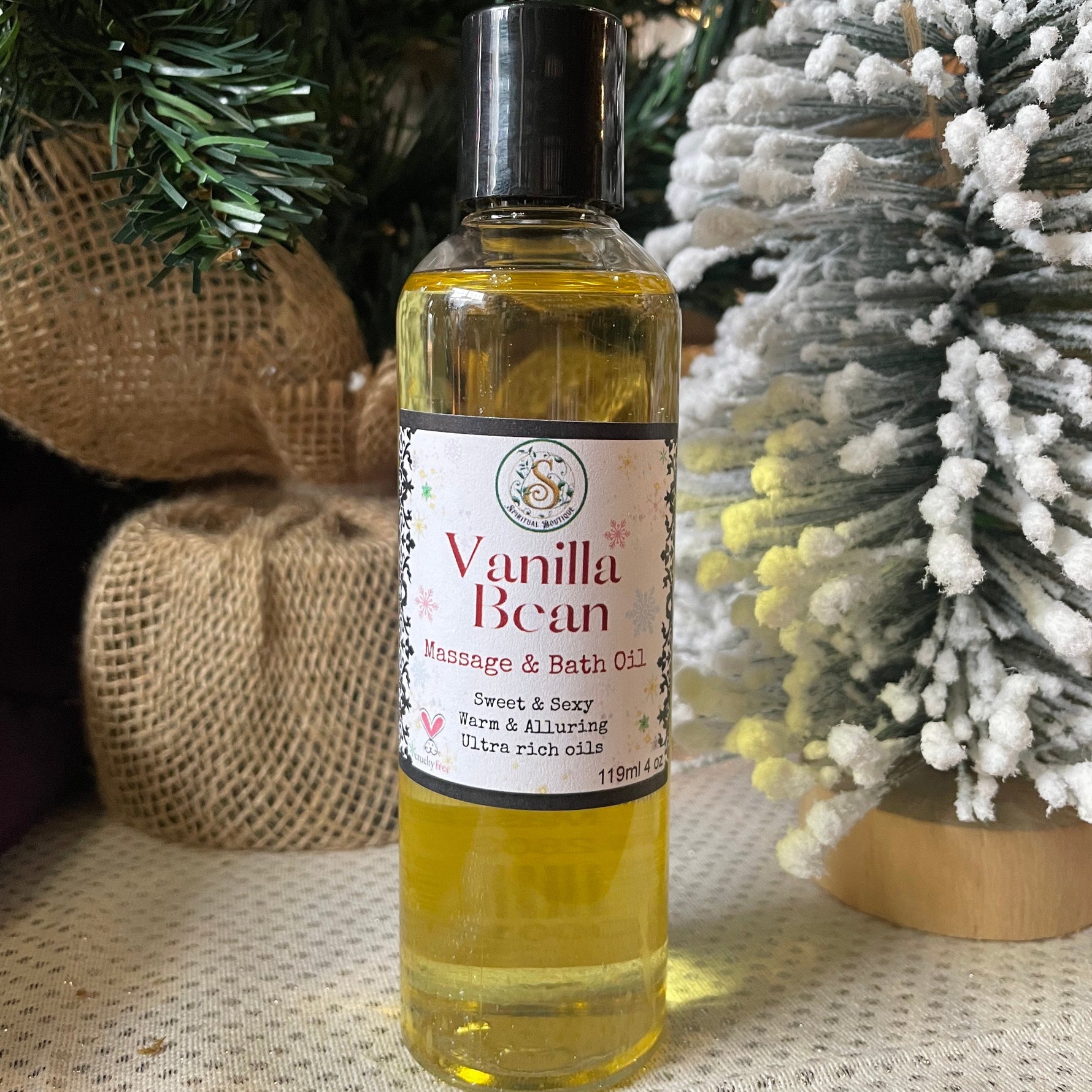 Ultra luxurious massage & bath oil in sweet & sexy Vanilla Bean, a holiday favourite. If you're like me, I love vanilla all year 'round. It's one of those warm scents that just has you feeling amazing every time you wear it. Vanilla is alluring warm scent that is relaxing, stress relieving and soothing.