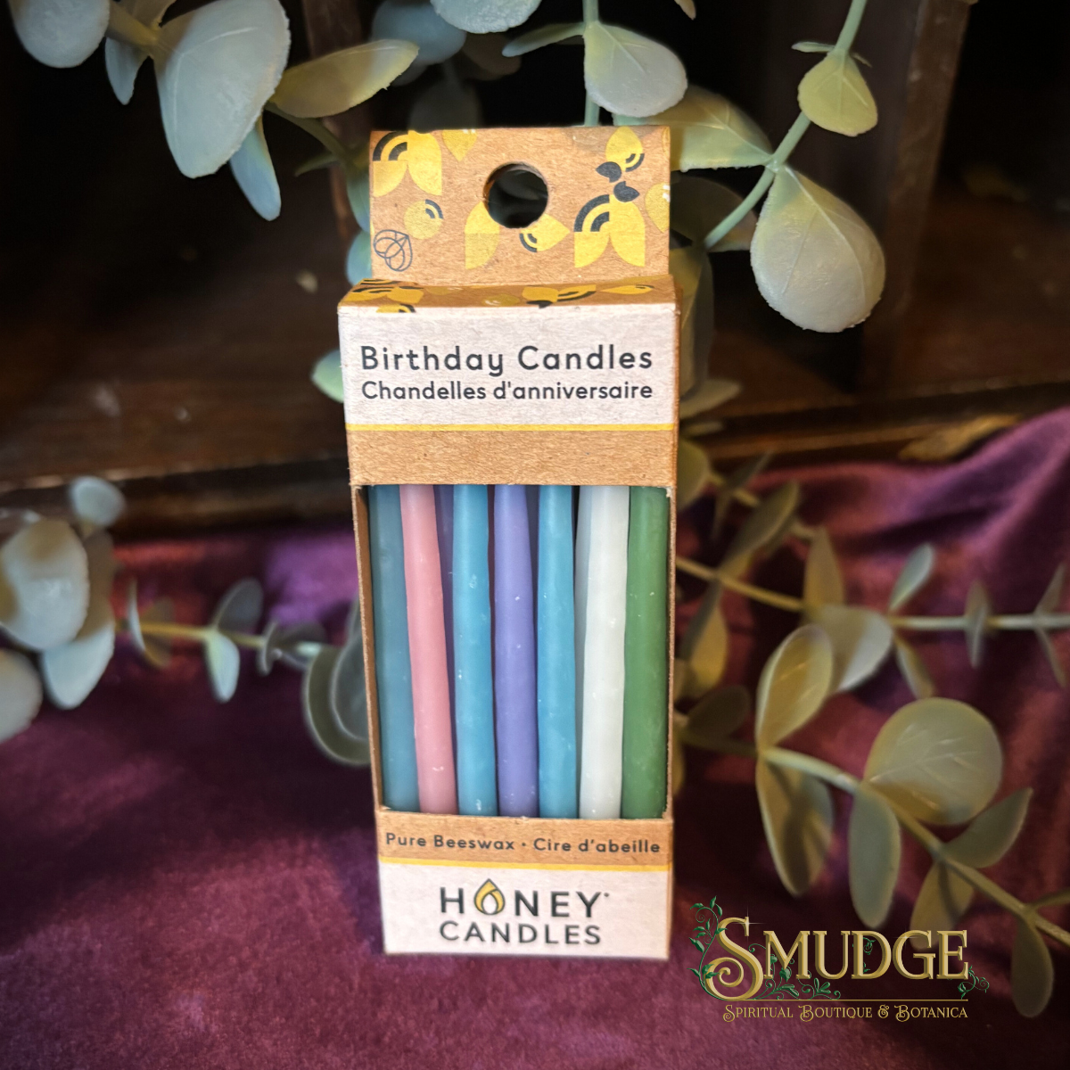 A pack of 20 pure beeswax birthday candles in a rainbow of Honey Candles® pastel colors (Green, Glacier Teal, Spring Crocus (purple), Paris Pink and Pearl), you'll love these beeswax birthday cake candles.
