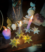 This mini candle holder is an essential accessory for anyone who practices candle magick. The prongs can be bent inward slightly to hold your spell candle in place. Available in silver and gold. This holder fits the chime candles available at Smudge Metaphysical and all mini candles that are .5 inch or 5mm in diameter.