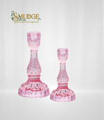 Beautiful pink vintage glass taper candle holders. A beautiful addition to your home, event or altar. These are both classic and trendsetting. Available in various colours and sizes. Pink is a wonderful colour to add love, peace and serenity to your space.
