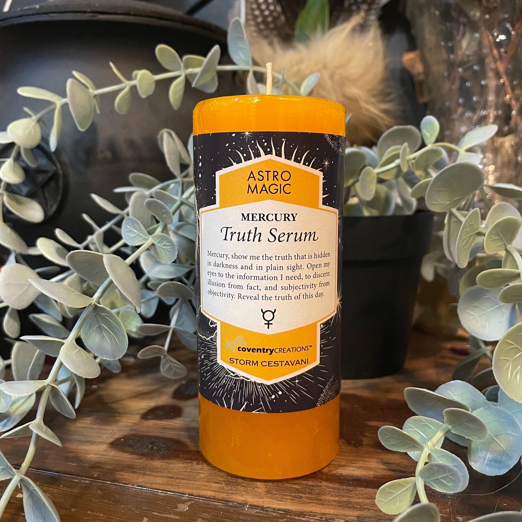 When you need the truth, you need Mercury. Just the facts are what Mercury is concerned about. Use the Mercury candle to empower your mental disciplines of reason, communication, influence, contracts, and the discernment of the truth.