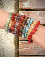 Beautiful natural stone chip bracelets are wonderful for adding crystal energy to align your energy and raise your vibration. To create this bracelet, polished chips have been strung on elastic, making it as comfy as it is beautiful.