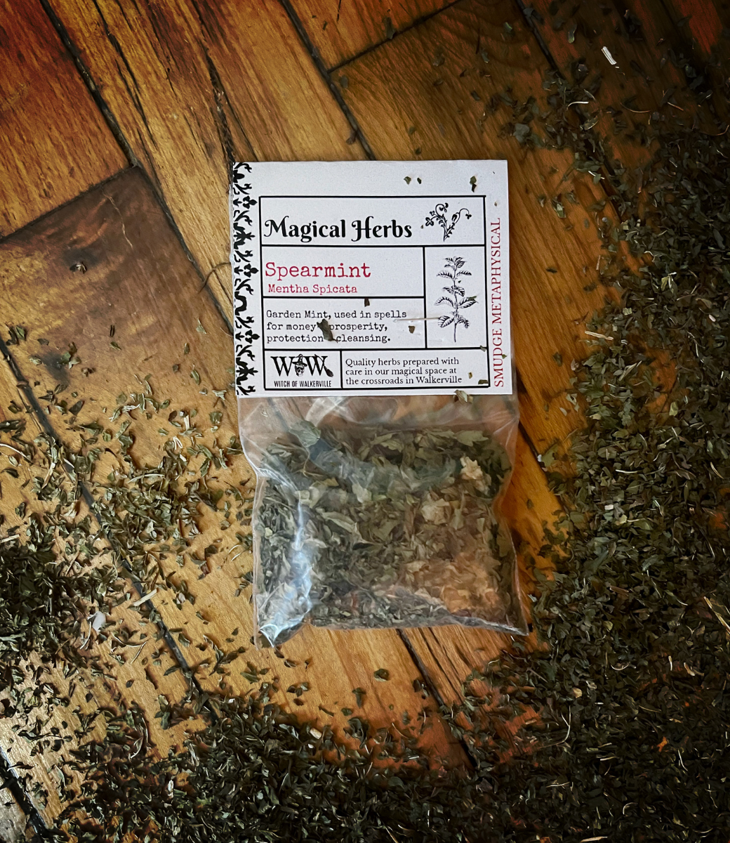 Spearmint is a fragrant, versatile herb cherished in magical, spiritual, and herbal practices. Known for its uplifting aroma and bright energy, spearmint is used to cleanse negative energies, protect during sleep, support healing, and attract abundance. Its lively essence also enhances mental clarity, communication, and love magic.