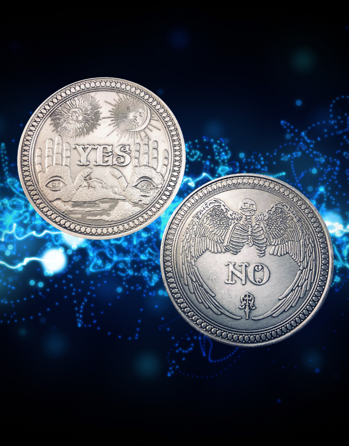 A fun divination tool and novelty item to help you make up your mind. Mystical designs on both sides of the coin. Choice of either silver or bronze colour.