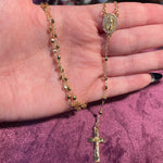 Gold Rhinestone Virgin Mary Rosary Necklace