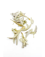 Sage is masculine in nature, associated with the element of air and the planet Jupiter. White Sage Leaf is used as an incense, smudging, or for purification. Loose white sage from California.