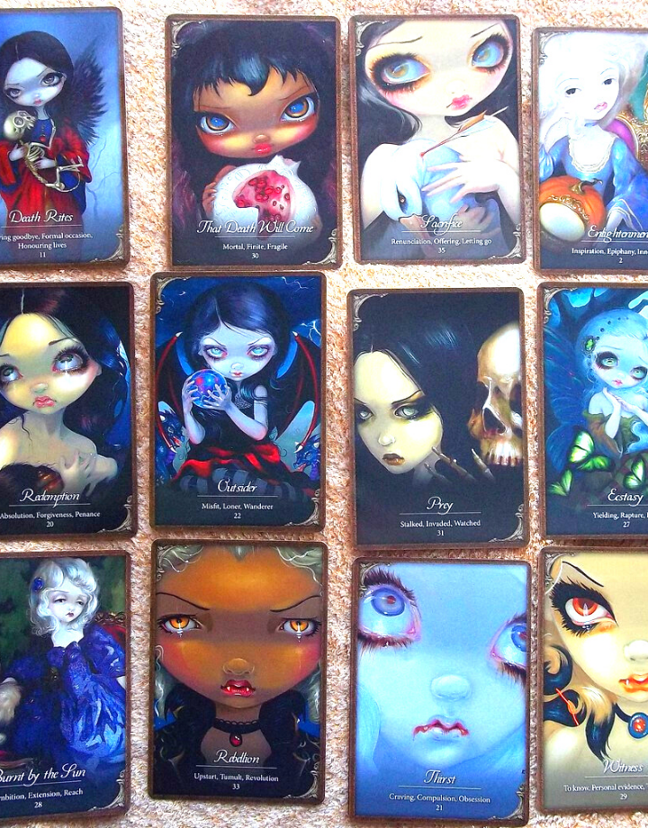 “A stunning deck designed for those facing difficult decisions, upheaval in relationships or wishing to move away from draining careers, situations or people. … Vampiric energies … proving to be allies … helping many humans through their own dark night of the soul.”