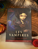This oracle deck uses the imagery and symbolism of vampires — traditionally creatures feared, misunderstood and operating in the shadows — as guides rather than just monsters. The idea is that we can learn from their attributes (immortality, seduction, darkness, transformation) to face our own inner fears, leaving draining situations, making difficult choices, and moving toward healing.
