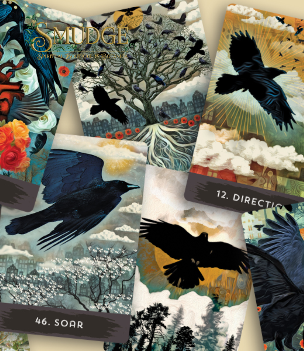 Each card in this oracle deck offers a message to the reader from the fascinating behavior of these birds, from the sacred space of a nest to the community of a murder of crows, from the gift of a shiny trinket to the curiosity of a city crow peering into a human home.