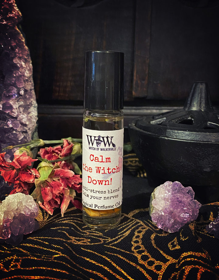 Calm the Witch Down oil is helpful when you are nervous or feeling anxious. It's warm, calming scent is like a reassuring hug. This roller is perfect to carry with you and apply when you're stressed or overwhelmed.