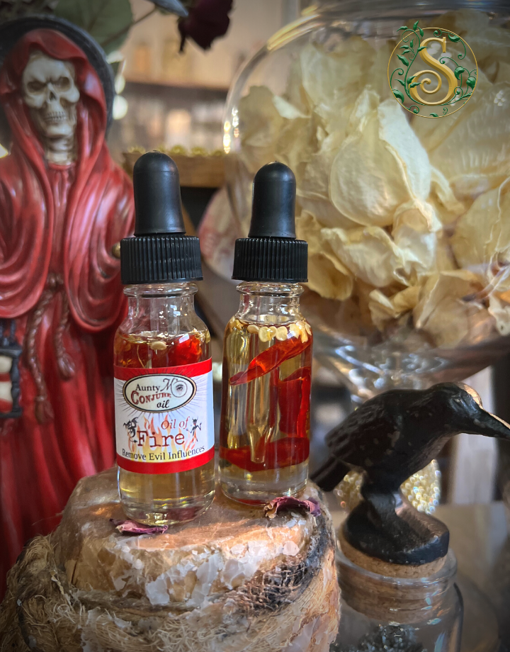 Oil of Fire is a spicy & hot oil used for powerful cleansing and removing negative influences from your life. You can also use this oil in workings to rid yourself of bad habits, negative people or influences around you. It is an oil you use to do "hot" workings and is toxic and irritating to the skin and eyes.
