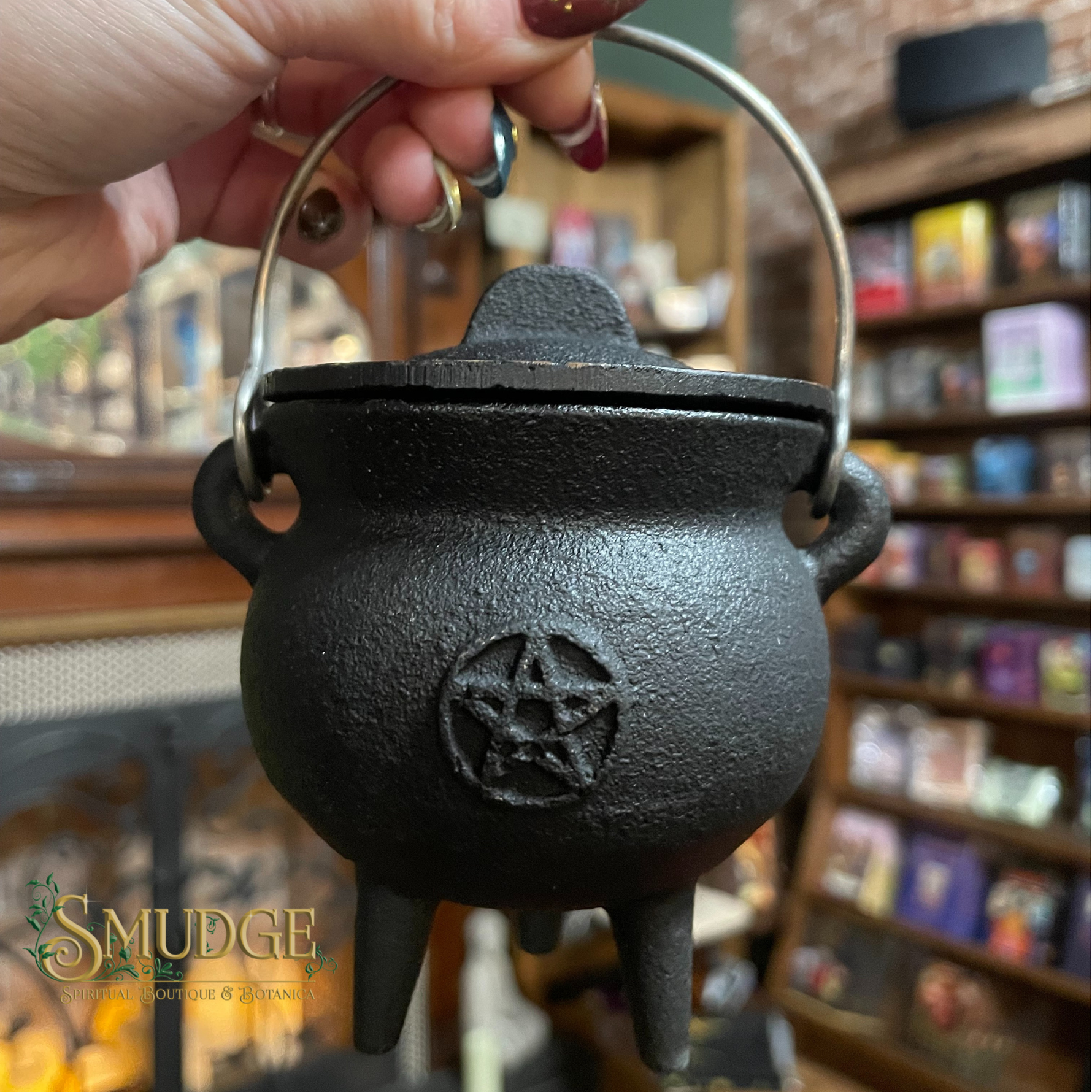 This 4-inch cast iron cauldron is a classic magical tool, perfect for ritual work, altar display, and spellcasting practices. Featuring a raised pentacle symbol on the front, this cauldron represents protection, balance, and the harmony of the five elements—earth, air, fire, water, and spirit.