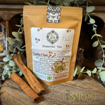 This Vanilla Chai loose leaf tea is a rich, comforting blend of bold black tea, warming spices, and smooth natural vanilla flavor, crafted to create a perfectly balanced cup that is both energizing and soothing. Spicy ginger, cinnamon, cardamom, cloves, nutmeg, and black and white pepper bring classic chai warmth and depth, while soft vanilla adds a creamy sweetness that rounds out the blend. Delicate calendula petals lend a gentle floral note and a beautiful visual touch.