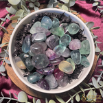 These Fluorite tumbled stones are smoothly polished, making them perfect for energy work, meditation, pocket stones, and crystal grids. Known for its beautiful bands of purple, green, blue, and clear tones, fluorite is prized for its calming, clarifying energy and versatile spiritual use.
