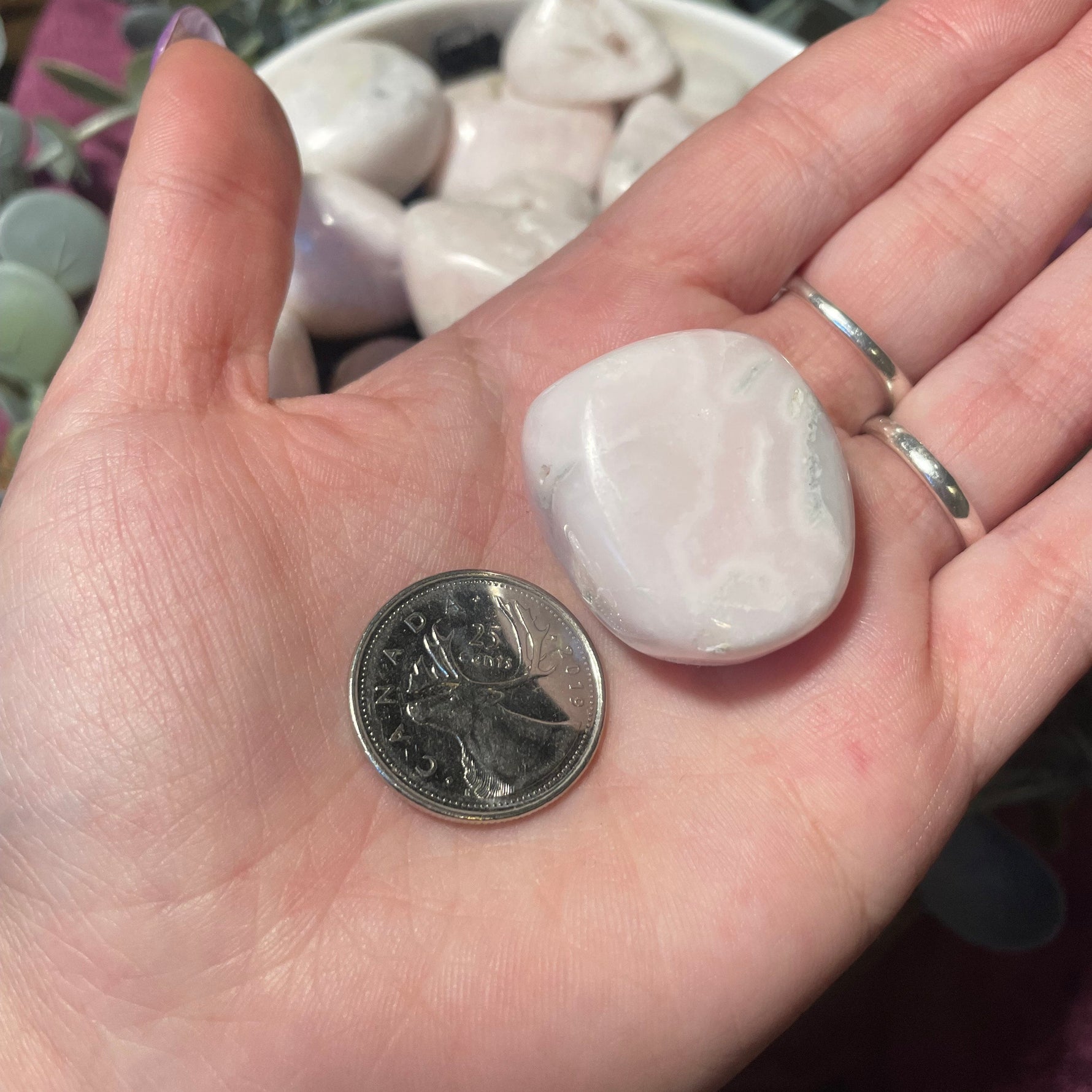 These Pink Mangano Calcite tumbled stones are softly polished and glow with gentle shades of blush pink and pale rose. Known for its tender, nurturing energy, Pink Mangano Calcite is deeply connected to emotional healing, compassion, and heart-centered comfort.