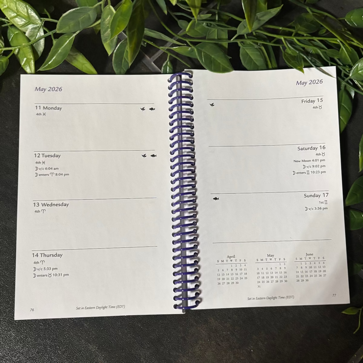 Perfect for planning spellwork, gardening, self-care, manifestation, creative projects, or simply staying aligned with the natural rhythms of the universe, this datebook offers an easy way to weave astrology into daily life. Beautifully designed and packed with lunar insights, it helps you stay grounded, intentional, and magically organized all year long.